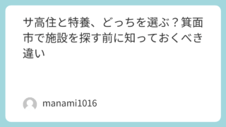 はじめに高齢者の住まい選びでは、「サービス付き高齢者向け住宅(サ高住)」と「特別養護老人ホーム(特養)」の違いが分かりにくいと感じる方が多いです。箕面市にも複数の高齢者向け施設がありますが、施設の目的・入居条件・費用などがそれぞれ大きく異な...
