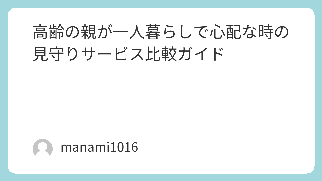 あなたと親御さんにとって、より安心できる見守りの形が見つかりますように。