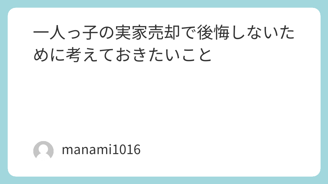 この記事では、一人っ子が実家売却を考える際に、後悔しにくくするための考え方と整理のポイントを順番にまとめていきます。